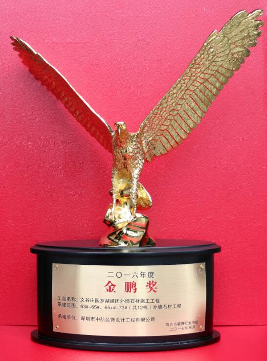 近日,代表深圳裝飾最高榮譽的2016年度深圳市裝飾工程“金鵬獎”評比揭曉,中航裝飾承建的中信銀行深圳分行皇崗支行裝修工程、文谷莊園羅湖組團外墻石材施工工程兩個項目雙雙獲獎。
