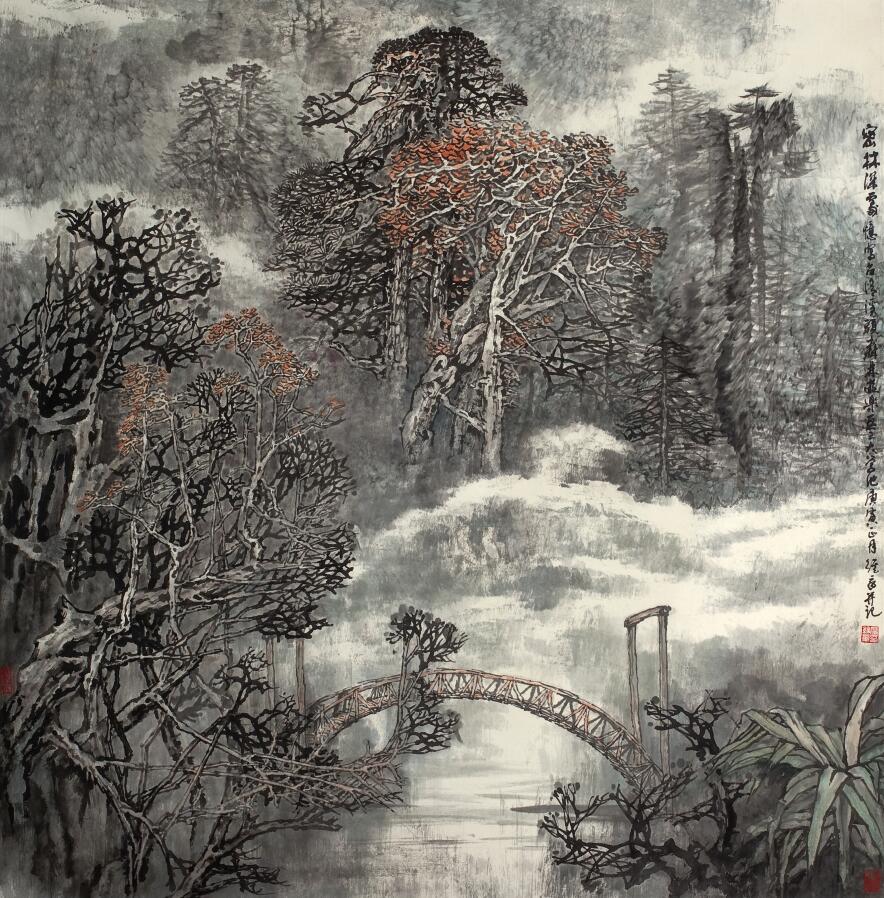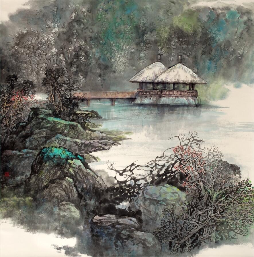 ? ? ? ?廖維章老師是中國美術家協會會員,中國國畫家協會理事,江西科技師范大學教授,江西三山書畫院院長,南昌市美協名譽主席,其作品多次入選全國美展,并獲得各種獎項。曾編著出版《詩畫山水》等專著及個人畫集多部,2003年榮獲“全國畫院百佳畫家”稱號。幾十年來筆耕不輟,探索于山水之間,其山水作品既有扎實的傳統功底,又融入了現代藝術的裝飾風格,注重山水畫詩情意蘊的創造,畫面沉著、厚實、寧靜,給人以自然、清新、秀麗的新境界。