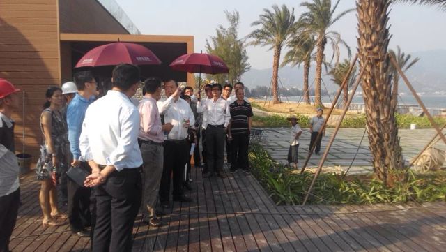 10月17日,花樣年總裁潘軍攜集團高管團隊視察龍岐灣項目。此項目是由花樣年投資、我公司承建的大型地產項目,位于大鵬西沖。在我公司總經理孫玉東等人員的陪同下,潘軍總裁不畏烈日高陽,對別墅區、體驗館、高層公寓樣板房等施工地點進行詳細的勘察;對現場施工材料的品質、現場施工組織的安全性及現場施工管理的合理性進行了考察。潘軍總裁要求現場的工作人員加快工程施工進度,按最高目標完成各項工程建設任務。
