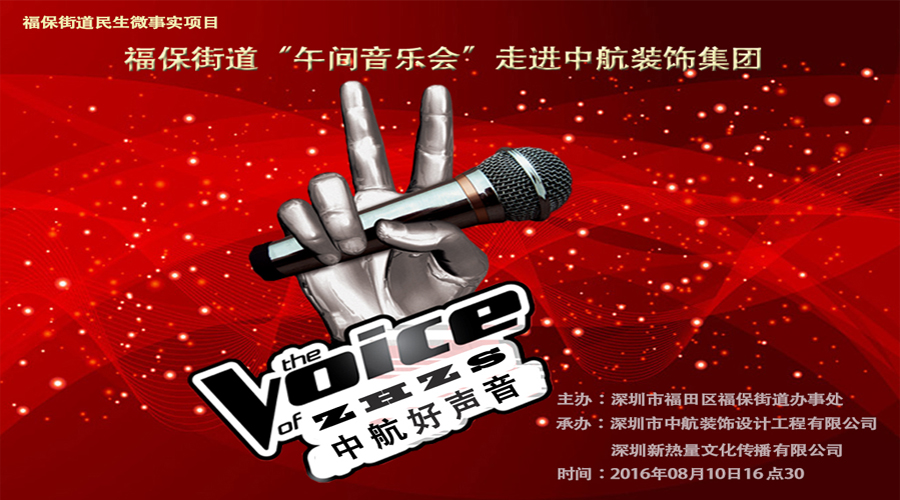 ? ??2016年8月10日,由福田區(qū)福保街道辦主辦、中航裝飾集團(tuán)及深圳新熱量文化傳播有限公司承辦的“午間音樂會(huì)”暨“中航好聲音”總決賽在福田保稅區(qū)中航裝飾集團(tuán)總部的多功能廳精彩上演,經(jīng)過近兩個(gè)小時(shí)的激烈角逐,這一聽覺盛宴給中航裝飾的全體員工在炎炎夏日帶來了一份酣暢淋漓的享受。